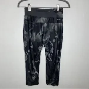 Nike running Capri leggings in a black and grey print with a drawstring waist, size xs