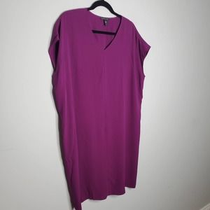 EILEEN FISHER Purple High V-Neck Cap Sleeve Tunic Silk Dress Sz S