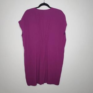 EXCELLENT pre-owned condition: Eileen Fisher High V-Neck Cap Sleeve Tunic Dress in Purple. V-neckline, cap sleeves, solid color. 100% silk.