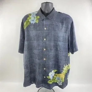 Tommy Bahama Hawaiian Silk Shirt Mens Large Pineapple Pin Up Girl Short Sleeve