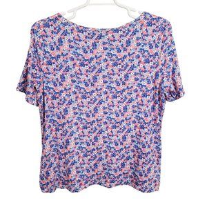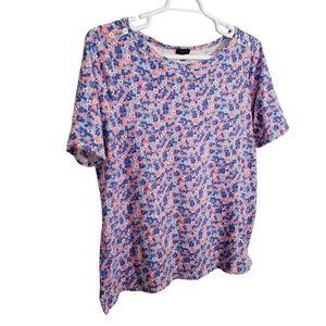 Talbots Size 1X Top Knit Floral Pullover Stretch Cotton Blend Button Accents