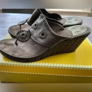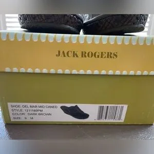 Jack Rogers Del Mar Mid Caned Wedge Sandal, dark brown, size 9, very good condition