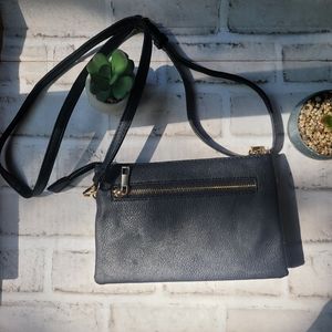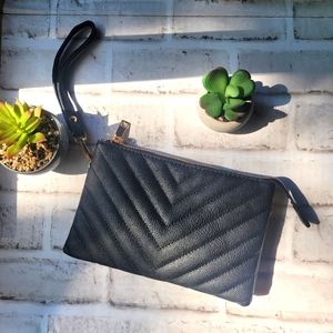 NWOT Beautiful black vegan leather clutch with additional shoulder strap so you can use it as a cross body. 3 zippered inside pockets make staying organized a breeze! Back zipper pocket is fabulous and functional!