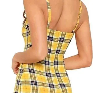 Women's Plaid Print Mini Cami Bodycon Dress. Size XS
