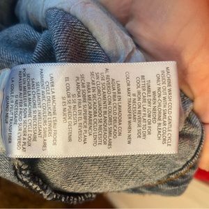 Great distressed jean jacket with fully functional pockets. Would look really cute with dresses and skirts!