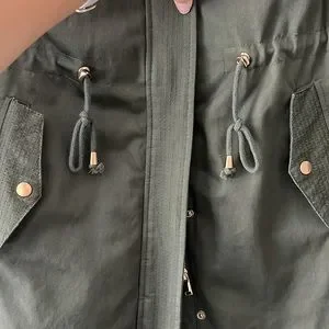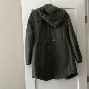 Mid length hunter green jacket with hood