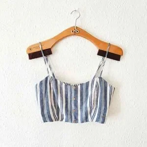 Pull & Bear blue and white Coord Set. Crop top and matching shorts. Top has front button details with gather stretch back and adjustable straps.