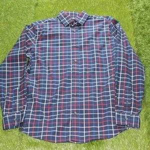Old Navy Men's Small Slim Fit Dress Shirt - Blue Plaid. Excellent Used Condition, Only Worn a Few Times. Smoke Free Home. Cotton / Poly Belend For Easy Care.