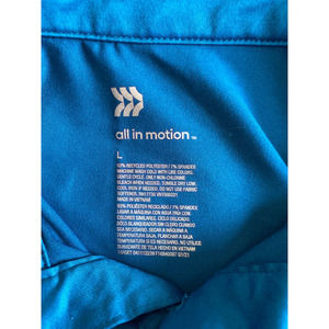 All in motion men’s polo size large short sleeve blue multi stripes across chest