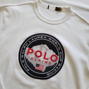 New Men's Size Large Polo Ralph Lauren World Cup Racing Alpine Crew Neck Royal White Sweater.