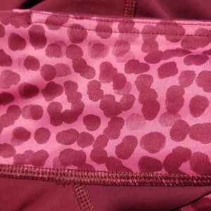 Lululemon Athletica leggings cranberry size 8. Has 2 front zip pockets. Mesh detail on leg. Waist 29". Inseam 25". Inseam 9 1/2" .