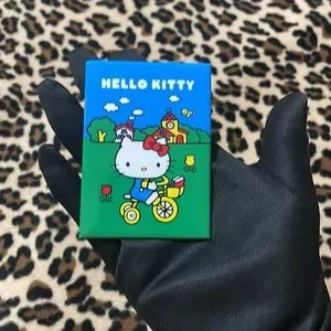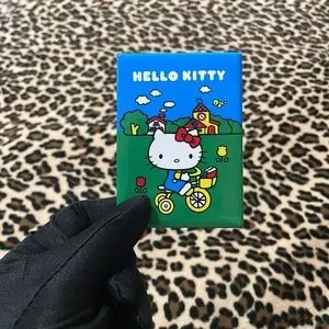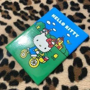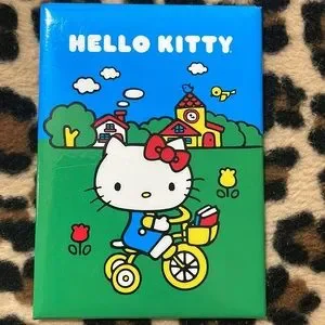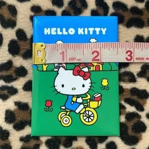 A large refrigerator magnet featuring Hello Kitty riding a tricycle! 💙❤️ Measures 2 1/2 inches across and 3 1/2 inches long. Officially licensed product.