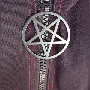 featuring super dope pentagram metal zipper pull, red stitching, mini pentagram decor "buttons" embellems, deep pockets, and much more! floor duster length. Not thin, not thick, versatile!