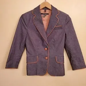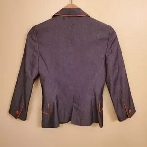 ZARA denim blazer with faux leather piping and buttons. Two button front with slit in back.