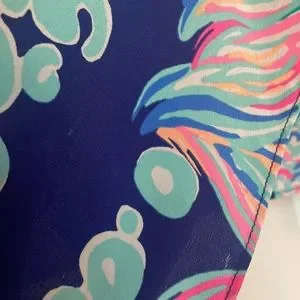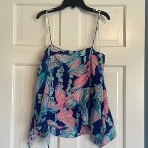 Adorable uneven hem fish tank top from Lilly Pulitzer. Straps are adjustable. Two small spots along hem area of left side. Picture of it included.