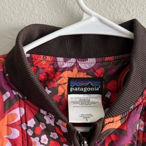 Size small Patagonia vest. Barely worn, no rips or stains. Front zips works great. Super cute floral print!