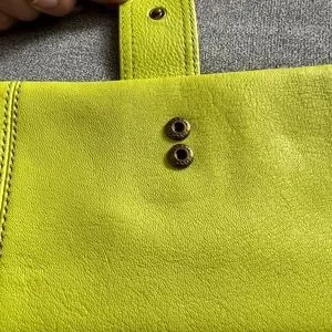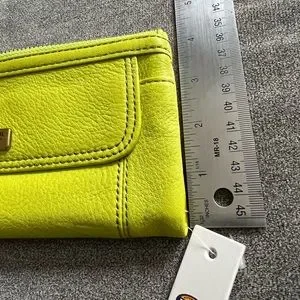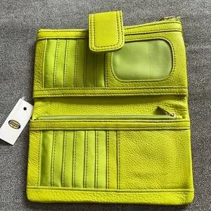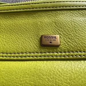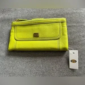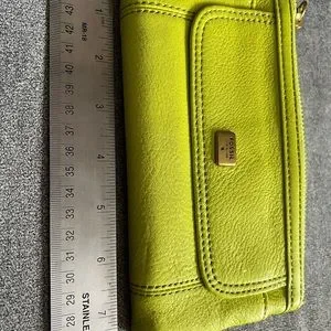 Beautiful Fossil Leather Emma Clutch in stunning springy lime color. 13 credit card slots, see thru ID slot, two zipper compartments , small snap pocket on front and has double snap closure. Perfect Spring accessory!