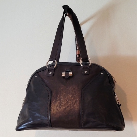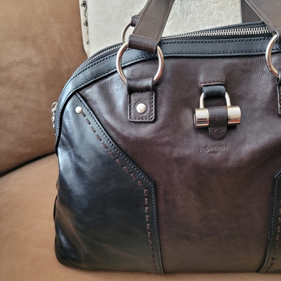 Authentic YSL Muse bag. Rare and special dark brown signature Y pattern in the middle on black, with brown handles. Made in Italy. No tears or rips. Slight wear on top of handles and a tiny spot on the lock (please zoom in last 3 images). Excellent pre-owned condition. **Does not come with a key fob**. Super clean inside. Will include a non-YSL dust bag. Accept reasonable offer.
