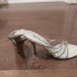 Nina silver metallic high heel shoes. Wore once to my birthday bash. This one has a taupe heel, so sleek, light and easy to wear.