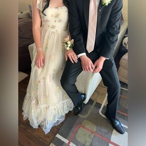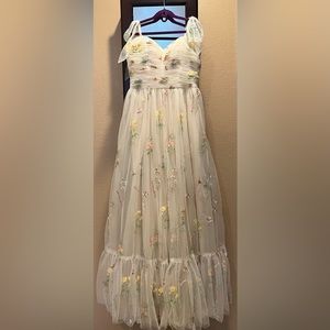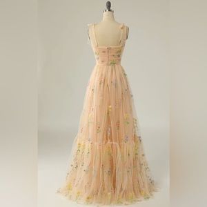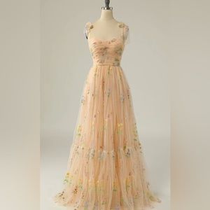 $165.00 Beautiful floral champagne dress! Like knew, Worn ONCE for 7 hours.