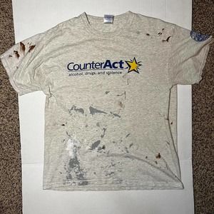 This shirt has a lot of paint on it and the graphics have some distressing but otherwise its in good shape.