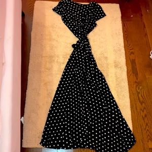 HP❤️Women’s Black High Slit Polka Dot Maxi Dress Sz S