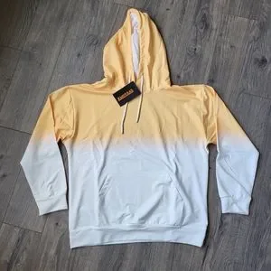 Dip Dye Hooded Sweatshirt Yellow & White Drawstring hood Size Medium New with tags 95% polyester 5% spandex