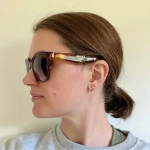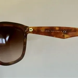 Prada sunglasses style NAK-6S1 in havana brown with unique, slender black accent trim. Excellent condition. Worn only a few times. Comes with cleaning cloth and original case.