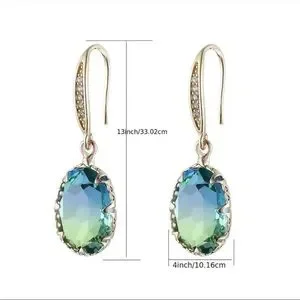 New Bright Oval Gemstone Pendant Temperament Tourmaline Earrings