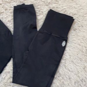 It’s the good karma back cross back bra with the high waist ribbed band good karma legging has pinhole for control on work out moist and sweat nice and flex squat free