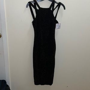 Bisou Bisou Michele Bohbot Dress Sz 2 Black with shiny gold.