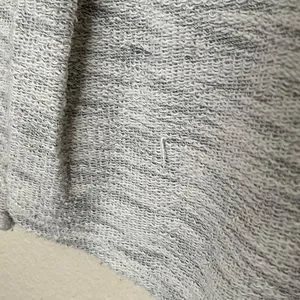 In fair condition! Does have a very small stain on the front and some loose threads (see pictures). Stain may be able to come out, have not had a chance to really try to get it out. Size: Large, but fits more like a S/M in my opinion.