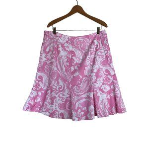 CHAPS Pink/White Abstract Floral Skirt Size 14 Cotton With Cotton Lining Gored