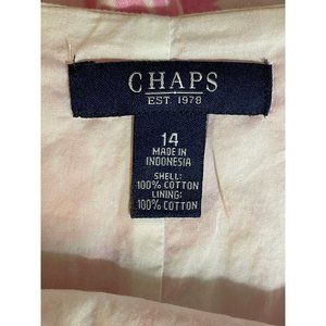 CHAPS Pink & White Abstract Floral Skirt Size 14 Cotton With Cotton Lining Gored. So pretty with no flaws. See photos for more details and measurements. Let me know if you have questions. Fast shipping.