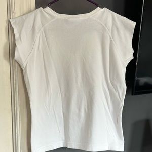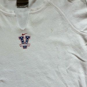 Rare sleeveless golf shirt from Nike, red white & blue “Victory” symbol. There is one tiny grey mark on front of short that I’m fairly positive will come out in the wash with some stain remover. It’s very minor. Size Medium.