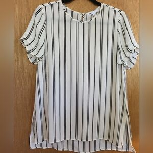 Daniel Rainn NWOT short sleeve striped blouse with split side hem, Medium