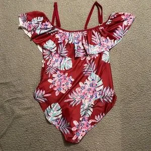One piece swimsuit maroon and floral print size XXL