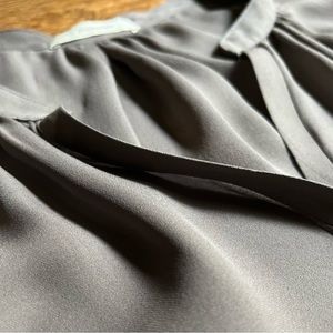 Tags: batwing peasant medieval renaissance milkmaid silk minimalist unisex neutral earth tone grey gray v neck collarless long sleeve quarter loose bohemian witchy goth southwestern Doen cottagecore