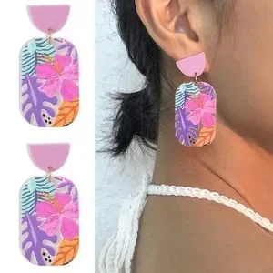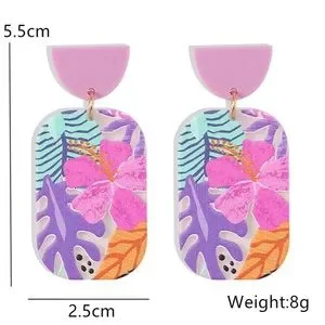 🌟 Acrylic Flower Hibiscus Tropical Transparent Square Earrings Palm Leaf