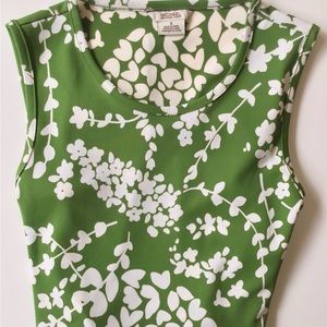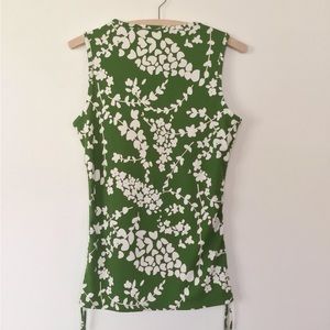 Great Michael Kors grass green and white floral slightly stretchy long sleeveless top with cinch ties on both sides to adjust the length. Excellent preloved condition.