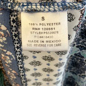 Pink Rose Women's Bohemian Pattern Blouse with Zipper back, Size Small