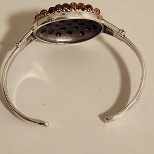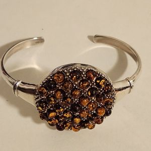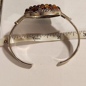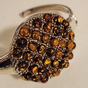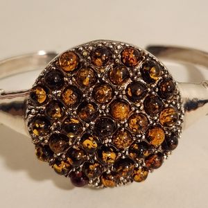 Handmade heavy genuine Baltic Amber and Sterling Silver cuff Bracelet New 26.5 G