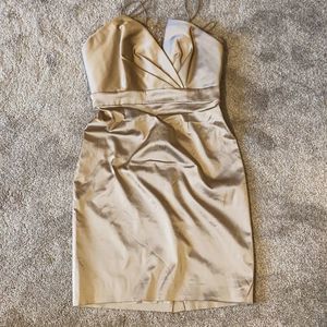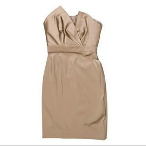 Theia Couture Champagne colored strapples dress