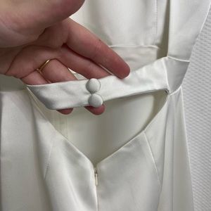 Originally purchased from Calgary’s BRIDAL CENTRE, to wear as bridal gown, decided to go a different direction. Could be worn for prom, graduation, wedding dress, bridal shower, rehearsal dinner… etc! Beautiful formal gown! It would fit up to a 4. No alterations done on the dress, but can be easily altered to fit perfectly! I am 32B bra size and the top had lots of extra room - I would needed it altered to fit a little tighter **holding the dress tight on my chest in photos**. Brand new with tags. Originally $323.95