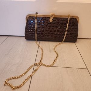 🤎Faux reptial skin purse with golden clasp and chain.