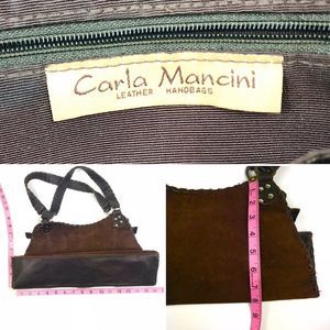 Carla Mancini leather & suede satchel bag purse brown whip stitch