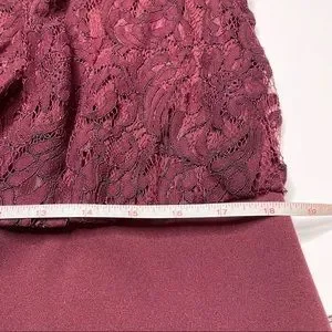 Adrianna Papell Burgundy Lace Long Sleeve Jumpsuit