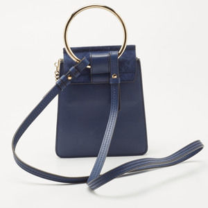 CHLOE Blue Leather and Suede Mini Faye Crossbody Bag