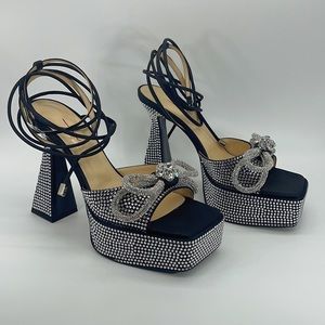 Mach&mach Double Bow Sparkly 140 Silk Ankle-Strap Sandals