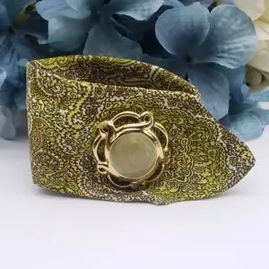 Vintage Handmade 100% Floral Silk & Metallic Green Medallion Bracelet